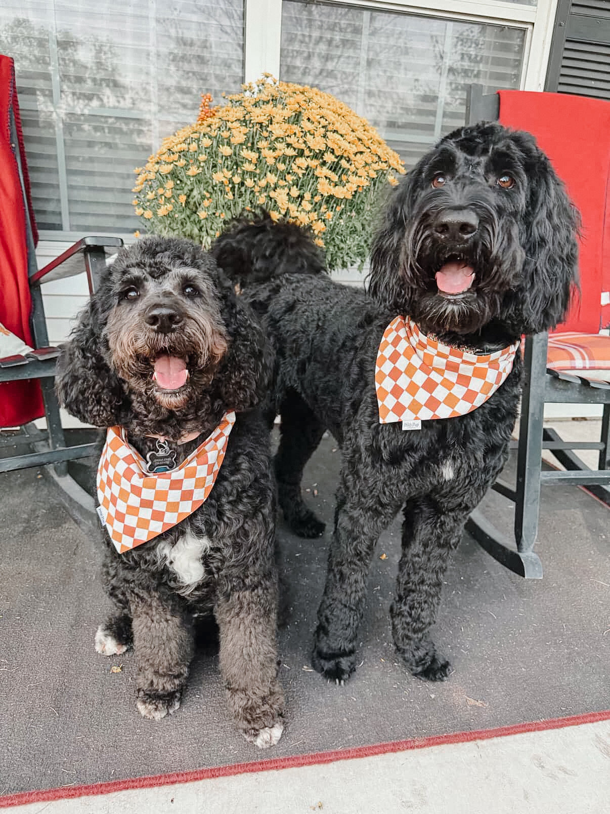Meet Charlie and Auggie, the inspirations behind Posh Pup! They take on many roles around here, but their favorite one is going to the dog park and running around! These two can make friends with anyone and they truly see the best in people. Auggie and Charlie are so excited to share their bandanas with your pup!